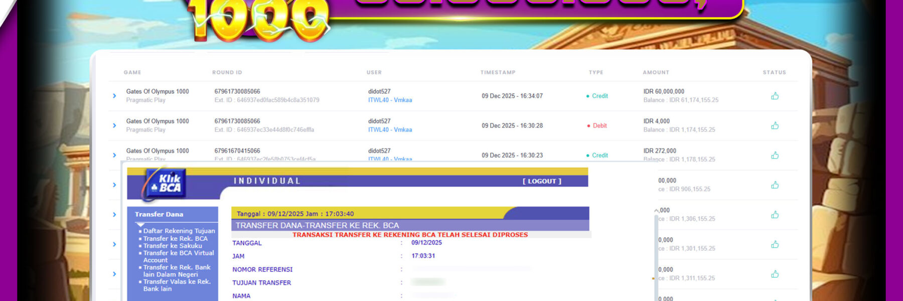 Read moreASENTOGEL – Win Slot GATES OLYMPUS 1000 RP.60.000.000., – LUNAS